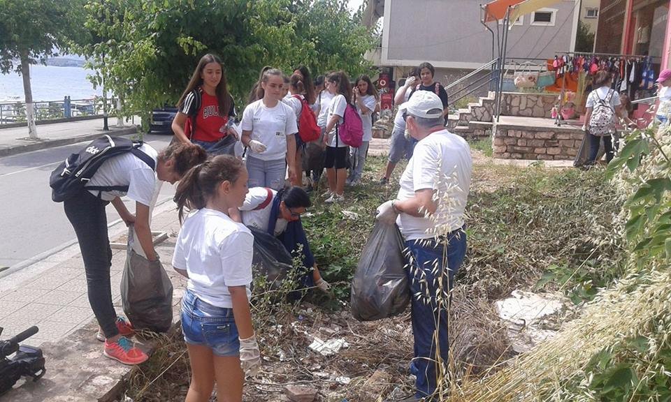 Me kete rast, veprimtare te AJMMI-t shperndane per nxenesi pjesemarres ne aksionet e pastrimit 60 bluza me logot e projektit.// Sofokli Mekshi-AJMMI